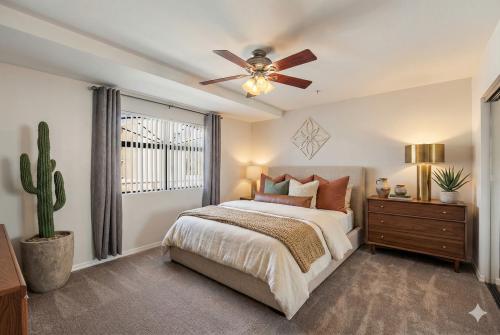 Seller Offering 2% Credit for Rate Buydown, Closing Costs, or HOA Pre-Payment! Rare 2BR 'former model' end unit steps from the heated pool. Walk to Biltmore Resort, world-class golf, and luxury dining. This light and bright home features recent updates: fresh paint, premium carpet, and updated electrical/plumbing. Both bedrooms boast walk-in closets and spacious layouts. Enjoy a remodeled bath with quartz counters and an oversized walk-in shower with a bench. All-inclusive HOA covers gas, water, sewer, trash, pest control, roof, and exterior maintenance. Gated community with assigned underground parking right across from the elevator. Resort living with total peace of mind! INTERIOR UPDATES New paint - all walls - 2025 New carpet with upgraded padding - 2025 Updated electrical outlets and switches - 2025 Blackout curtains in bedrooms Newer mirrored closet doors Updated fans and lighting throughout PLUMBING & MECHANICAL New water shutoff valves on every water line - 2025 Water Heater - 2024 Gently-used A/C - most of my summers gone KITCHEN Stainless appliances - refrigerator, microware, stove, dishwasher Tile granite counters in kitchen Newer kitchen faucet Matching cabinets throughout including laundry room BATHROOM Quartz bath counter Newer Pfister bathroom faucets Upgraded over-sized walk-in shower with glass doors, seat, cutout Newer elongated toilet - height FLOORING New carpet with upgraded padding - 2025 Newer Travertine tile flooring LAUNDRY Matching washer and dryer FIREPLACE Gas fireplace (HOA pays gas) OUTDOOR FEATURES Slate tiled patio Overlooks pool and barbeque PARKING & LOCATION Garage parking spot directly across from elevator Great end unit with no neighbors on west side Convenient to mailbox and fitness center