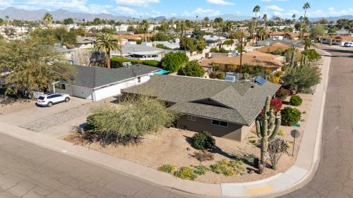Moments from Chaparral Park and the Greenbelt, this thoughtfully updated 4-bed, 2-bath mid-century home is set in one of Scottsdale's most desirable neighborhoods. Full of character, the interior features polished concrete floors, custom bookshelves, and thoughtfully designed storage throughout. The spacious kitchen offers granite countertops, maple cabinetry, and opens to a large dining area and family room. The garage provides flexible space for parking, a workshop, or hobby room. Driveway parking accommodates four vehicles, including two behind a secure metal gate. Block construction and energy-efficient upgrades add everyday comfort. The mature desert-landscaped backyard is a peaceful retreat with a covered porch, patios, and pool. Ideal for entertaining. Features & Improvements Energy Efficiency, Systems & Big-Ticket Infrastructure " Trane Energy Star heat pump HVAC with transferable 10-year warranty (2023) " Dual Solar/Electric hot water system with solar panel & 80-gallon tank " Landmark premium roofing with 30-year asphalt shingle (2011) " Replacement windows with double-pane glass throughout property " Under-slab main sewer line & lateral replacement (2014) " Main sewer line replaced from house to city connection (2014) Kitchen & Dining " Open-concept kitchen remodel with custom maple cabinetry with drawers, baskets & sliding shelves " Granite countertops with undercounter lighting, stainless sink & breakfast bar over custom bookcases " Bosch Energy Star true convection oven (2022) " Bosch Energy Star induction cooktop (2010) " Whirlpool Energy Star refrigerator/freezer with extended warranty (2024) " Whirlpool Energy Star Quiet II dishwasher (2024) " Skylight, window & shade operated by remote " Custom wall-to-ceiling built-in bookcase Interior Comfort, Layout & Storage " Camelback Mountain view from front sitting room " Double French doors to patio from family room " Master bedroom and primary guest room closets with custom shelving, lighting & mirrored French doors " Master bath upgraded with travertine floors and frameless glass shower " Guest bedroom and office closets with custom shelving and double doors " Entryway and hallway utility closets with custom shelving " Laundry room cabinets and custom shelving Outdoor Living " House and block walls professionally painted (2023) " Pool upgraded with 3M quartz plaster, electrical, plumbing & equipment " Master bath upgraded with travertine floors and frameless glass shower " Pool Energy Star pump upgrade (2025) " City of Scottsdale code-compliant removable pool barrier fence " Desert landscaping on drip irrigation system " Three cobblestones patio areas Security, Connectivity & Convenience " Lockable metal gates for secure parking " Matching lockable metal gate to alley " Monitored security alarm system " Fiber optic internet