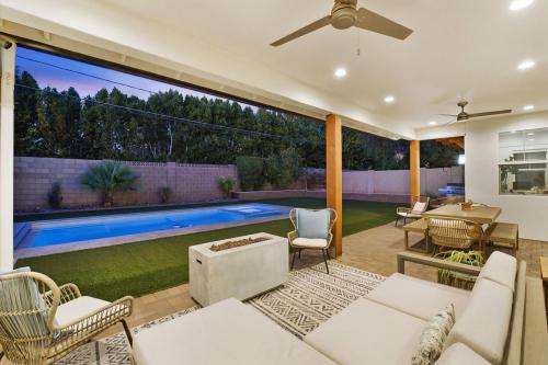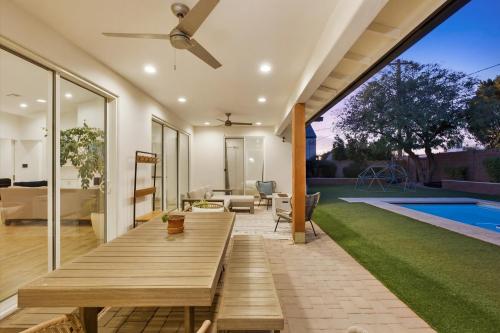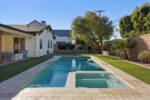 Rare opportunity to own a newer single-level home in the heart of Arcadia Lite's coveted 85018 within the Hopi Elementary district. Built in 2018, this modern custom offers 2,801 sq ft with 4 bedrooms, 3 baths, and a private den. High ceilings and three oversized sliding glass doors create seamless indoor-outdoor living filled with natural light. The kitchen features vented gas cooking, an oversized island, and walk-in pantry opening to the great room. The backyard features a heated pool and spa with electric cover, turf yard, patio cover, and ideal north/south exposure. Walk to Kachina Park, LGO, and Postino with canal paths nearby for miles of running or biking. Minutes to Camelback Mountain, the Biltmore, Sky Harbor Airport, and near the Phoenix Suns training facility.