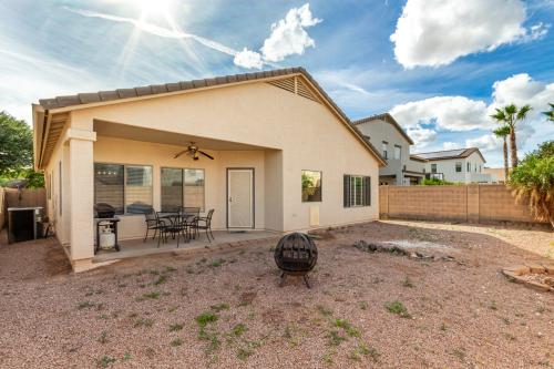 This beautiful single level, split floorplan, 3 bed + den, 2 bath residence in Skyline Ranch is looking for its new owners! Freshly painted inside and out, north/south exposure, great curb appeal, low maintenance landscape, and a 2 car garage are just the beginning. Inside you will find sizeable dining & living areas with tile in all the right places. The eat-in kitchen is open to the family room & comes equipped w/ample cabinetry, a pantry, stainless steel appliances, granite countertops, an island and butler's pantry. The primary suite showcases a full ensuite w/dual sinks , tile shower, garden tub and a walk-in closet. Also included is a nice sized backyard w/a covered patio. The community offers sand volleyball, basketball court and a playground area. This home is a true gem!