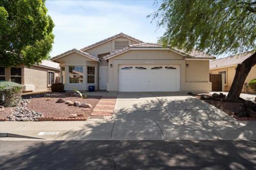 Welcome to Arrowhead Lakes, the premier lake community in Arrowhead Ranch nestled into the foothills! This updated 3-bedroom, 2-bathroom home features an inviting open floor plan and wood-like tile throughout the main living areas. Step inside to the light-filled living and dining room, where large windows bring in natural sunshine and create a welcoming space for gathering. The upgraded kitchen offers modern finishes and flows seamlessly into the family room, making it perfect for everyday living and entertaining. The primary suite includes its own private exit to the backyard, along with a beautifully updated bathroom featuring a walk-in shower and soaking tub. Two additional bedrooms and a full bathroom provide plenty of space for family, guests, or a home office.