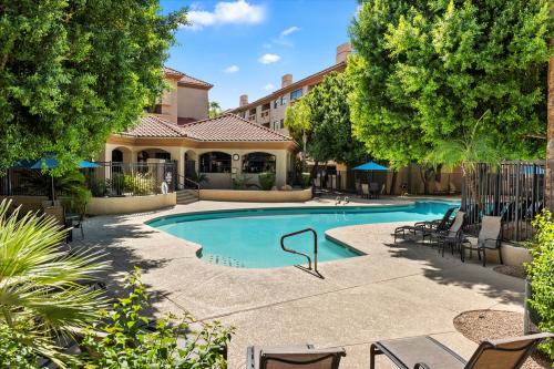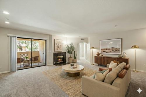 Seller Offering 2% Credit for Rate Buydown, Closing Costs, or HOA Pre-Payment! Rare 2BR 'former model' end unit steps from the heated pool. Walk to Biltmore Resort, world-class golf, and luxury dining. This light and bright home features recent updates: fresh paint, premium carpet, and updated electrical/plumbing. Both bedrooms boast walk-in closets and spacious layouts. Enjoy a remodeled bath with quartz counters and an oversized walk-in shower with a bench. All-inclusive HOA covers gas, water, sewer, trash, pest control, roof, and exterior maintenance. Gated community with assigned underground parking right across from the elevator. Resort living with total peace of mind! INTERIOR UPDATES New paint - all walls - 2025 New carpet with upgraded padding - 2025 Updated electrical outlets and switches - 2025 Blackout curtains in bedrooms Newer mirrored closet doors Updated fans and lighting throughout PLUMBING & MECHANICAL New water shutoff valves on every water line - 2025 Water Heater - 2024 Gently-used A/C - most of my summers gone KITCHEN Stainless appliances - refrigerator, microware, stove, dishwasher Tile granite counters in kitchen Newer kitchen faucet Matching cabinets throughout including laundry room BATHROOM Quartz bath counter Newer Pfister bathroom faucets Upgraded over-sized walk-in shower with glass doors, seat, cutout Newer elongated toilet - height FLOORING New carpet with upgraded padding - 2025 Newer Travertine tile flooring LAUNDRY Matching washer and dryer FIREPLACE Gas fireplace (HOA pays gas) OUTDOOR FEATURES Slate tiled patio Overlooks pool and barbeque PARKING & LOCATION Garage parking spot directly across from elevator Great end unit with no neighbors on west side Convenient to mailbox and fitness center
