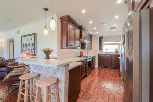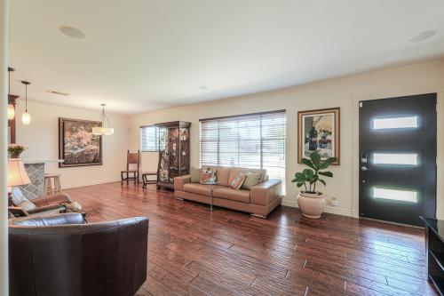 Exquisite Mid-Century Red Brick Gem in the Biltmore Area! 3 Bedroom, 2 Bath, 1 Car Garage, 1377 Square feet Beautifully remodeled to the studs in 2006 and thoughtfully updated again from 2020 to 2025, this home seamlessly blends timeless architecture with modern design. Step inside to discover fresh interior paint, new carpet, and a stunning kitchen featuring quartz countertops and a designer backsplash. Interiors curated by Dwelling, LLC showcase refined finishes and a cohesive aesthetic throughout. Enjoy mature irrigated lawns, custom landscaping, and a newly designed patio with a stylish patio cover—perfect for outdoor living. A custom driveway completes the home's exceptional curb appeal. Located within walking distance to Madison Middle School and minutes from Biltmore Fashion Park.