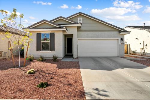 Our Premier showing on this home is scheduled for February 21st. You don't want to miss out on this one. Neighboring home listed for 20K more. The front guest bedroom is split. 2nd bathroom has a deep tub. Internet wired to each room. Tankless hot water. Water Softener, Solar loan balance to be paid at COE. Kitchen with center island, gas stove, quartz countertops, and large pantry. Great Room for family gatherings and leads to outdoor patio extended with pavers for additional outdoor entertaining. Inside laundry (washer and dryer do not convey), and a special surprise for those buyers who can't get enough storage. Easy access to 303 for your traveling needs. Call me for more information.