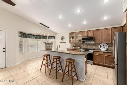 **PRICE REDUCTION**BRAND NEW ROOF**SPARKLING POOL**Granite Counters**Fresh Paint** New Carpet**Roof Installed Just This Week** Be impressed with the gorgeous street appeal - updated landscaping, paver lined drive & turf front yard. Entertain in the living/dining room that opens to the spacious kitchen and family room. Granite counters, stainless appliances & pendant lighting gives a warm welcome. The owner's suite features a bay window, garden tub, dual vanity & walk-in closet with custom shelves. Dig your toes into the new carpet and admire the fresh paint throughout. The oasis backyard features a refreshing play pool, covered patio with Edison lights. There is even a wood burning pizza oven! Let the party begin!! Added insulation and new thermostat provides energy efficiency. High speed Google fiber means you're always connected, great for work and gaming. Walking distance to the elementary school, junior high and playground. Tour today and make this amazing house your new home.
