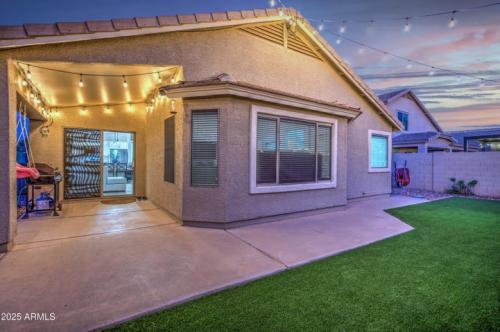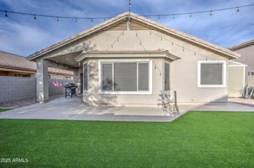 TURN-KEY- pack your bags and move in! You won't want to miss this absolutely stunning, model-perfect home! NEW ROOF! Enjoy the community amenities - pool, GOLF, parks! In addition to the gorgeous indoor features, sellers added the air-conditioned outdoor office space of 96 sq ft. Need another bedroom or craft room? Synthetic front and back yard! No excess water bill. Extended island in your spacious chef's kitchen w/ soft-closed deep cabinetry. Upgrades galore with quartz countertops, backsplash, & all appliances, including fridge and a top-of-the-line washer and dryer, upgraded flooring throughout- no carpet. A list of home features welcomes your review. Nothing to do here but enjoy your new home! The driveway has been professionally cleaned 11/25
