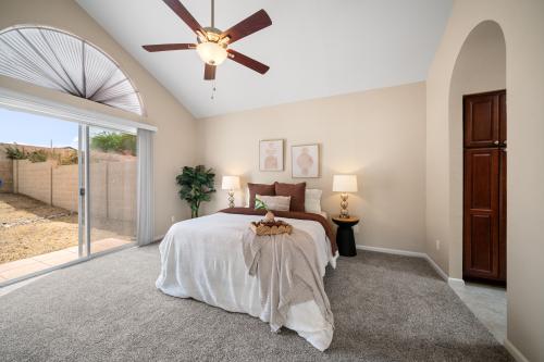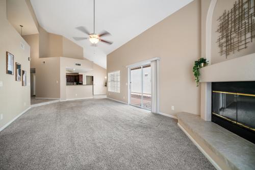 Amazing opportunity to own this highly upgraded, charming split floorplan 3-bedroom, 2-bath home in the sought-after golf course community of Red Mountain Ranch. Situated on a cul-de-sac lot, this 1,526 sq. ft. move-in ready home has been thoughtfully remodeled throughout. The owners completed a full renovation when they purchased the home, including a new roof, brand-new kitchen and bathroom cabinetry (not just refinished), granite countertops, updated carpet and tile flooring, blinds, fixtures, and faucets, along with appliances replaced in 2021 and new AC Compressor in 2024, making this truly a turnkey property. As you enter, the foyer opens to a spacious family room with soaring vaulted ceilings, a cozy wood-burning fireplace, and sliding glass doors that fill the space with natural light and create an open, inviting feel. The chef's kitchen features stainless steel appliances, granite countertops, a sit-up breakfast bar, and rich cabinetry with ample storage and workspace, all flowing seamlessly into the dining area with direct access to the patio--perfect for indoor/outdoor living. The primary suite offers vaulted ceilings and sliding glass doors to the backyard, creating a bright and airy retreat. The ensuite bathroom includes dual sinks, a soaking tub, separate shower, and a walk-in closet with cedar planking. Bedroom 2 offers flexibility as a home office or can be opened to create a formal dining space, while Bedroom 3 is ideal for guests or family. Step outside to the large, private backyard, a blank canvas ready for your vision with plenty of room for a pool, putting green, or your own custom outdoor oasis. Red Mountain Ranch offers an array of amenities, including an 18-hole Championship Golf Course, Restaurant, Tennis Courts and a new Gated Park with Pickleball Courts, Pool/Spa, and Fitness Center with an optional membership fee. Conveniently located just minutes from the Tonto National Forrest with some of the best Hiking and Biking Trails and just 15 minutes to Saguaro Lake and the Salt River, 20 minutes to Sky Harbor and Williams Gateway Airports, Scottsdale, and close to Shops, Restaurants.